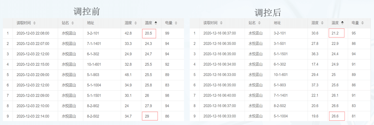 通過選取典型用戶室溫進(jìn)行監(jiān)測,調(diào)控前最高與最低室溫相差8.5℃,調(diào)控后最高與最低室溫相差5.4℃