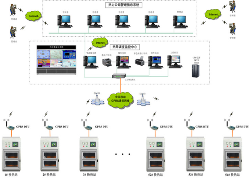 ◆監(jiān)控調(diào)度中心:結(jié)合大屏幕(LED/DID/DLP)對(duì)數(shù)據(jù)進(jìn)行存儲(chǔ)、分析,具有實(shí)時(shí)監(jiān)控、超限報(bào)警、歷史曲線、報(bào)表打印等功能,并根據(jù)數(shù)據(jù)分析結(jié)果向各換熱站發(fā)出調(diào)度控制指令;